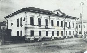 [[Изображение:Королёвское_училище_N_1_в_1920-х.jpg|thumb|left|300px|Вид здания в 1925 году ([[ТКСТ|Губернский Строительный техникум]]) — с юго-западной его стороны.]]