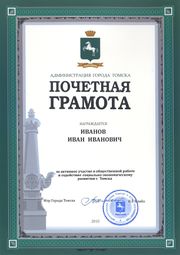 12:56, 5 марта 2015 Почетная грамота Томск.jpg (файл) 555 КБ Oleg K. Abramov (обсуждение | вклад) {{Изображение | Описание = Региональная награда «Почётная грамота города Томска». Некоммерческое использование изображения | Источн… 1