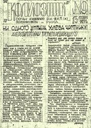 21:21, 2 апреля 2015 Колхозник (газета 1931).jpg (файл) 260 КБ Oleg K. Abramov (обсуждение | вклад) {{Несвободный файл | описание = Газета «Колхозник» (в 1991—2010 гг. — газета «Наше Причулымье»). | источник … 1